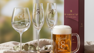 Stunning, etched Diamante glasses with genuine Swarovski crystals - perfect for celebrating a life milestone in sparkling style.