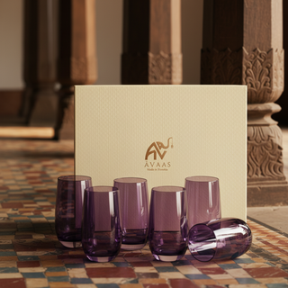 Āvaas | Gift Box - Colourful Long Drink Glass | 460 ml | Crystal | Purple | Set of 6