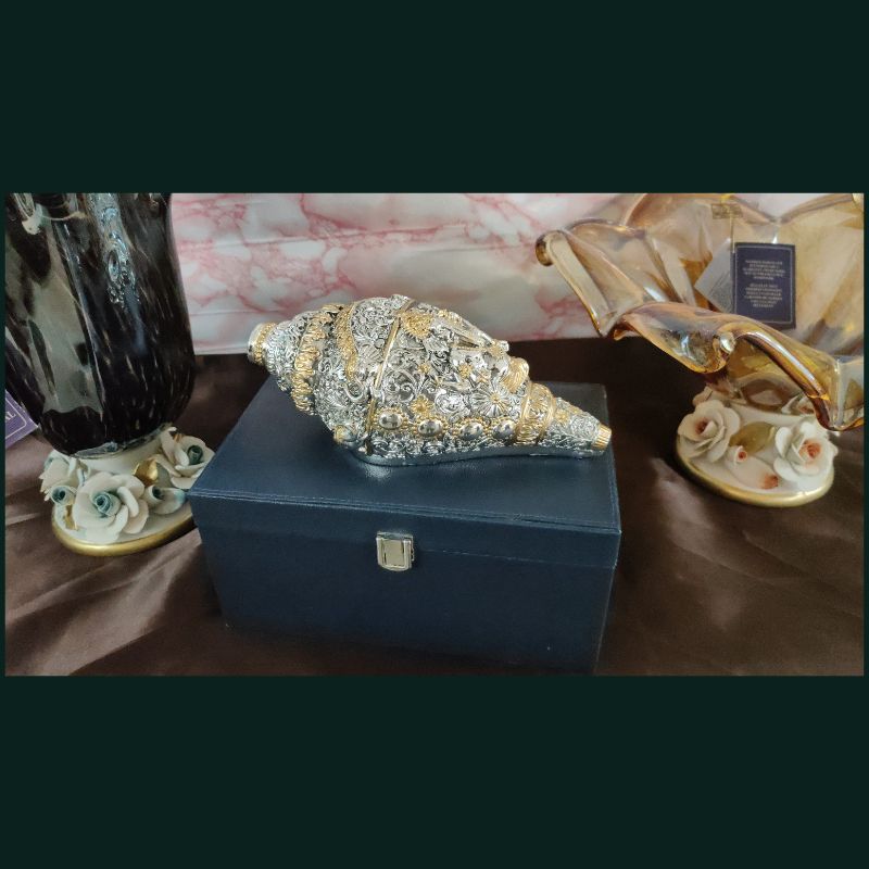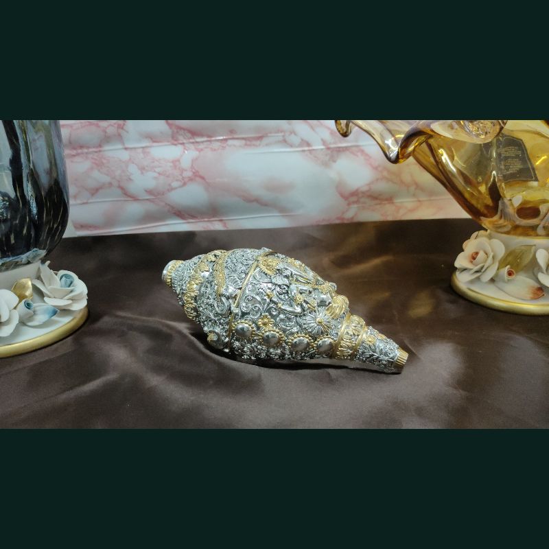 Bring divine harmony into your home with the Avaas Ganesha Sankh, a spiritual décor piece crafted in premium German Silver. This beautifully sculpted conch features a radiant Silver & Gold finish, making it a timeless symbol of purity and prosperity. Moreover, its elegant detailing ensures it stands out as a meaningful gift or a serene addition to your sacred space.