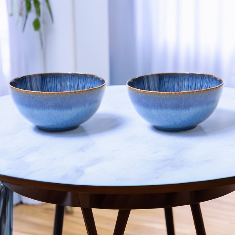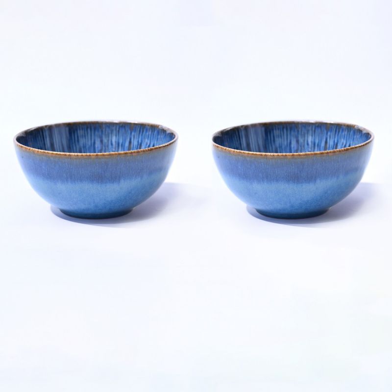 Enhance your dining experience with the MESA Agata Cobalto Bowl Set of 2, a perfect blend of craftsmanship and elegance. Handcrafted from high-quality stoneware, these bowls feature a deep, rich blue glaze inspired by natural minerals, complemented by subtle textured lines that add depth and character. Measuring 14 cm with a 530 ml capacity, they are ideal for serving cereals, soups, salads, desserts, or snacks. The glossy glaze not only enhances their beauty but also makes cleaning easy and ensures resistance to stains. Designed for both modern and rustic interiors, this set adds a touch of artisanal sophistication to any table setting.