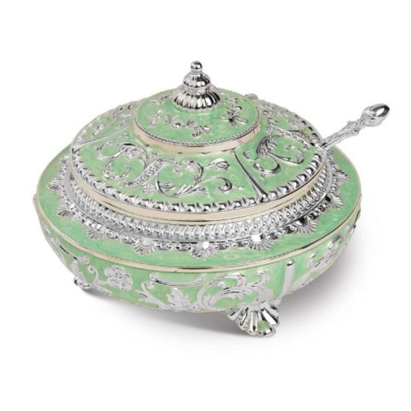 Bring timeless elegance to your table with the Avaas Tulsi Floral Metal Candy Dish, a graceful blend of artistry and everyday utility. Crafted from premium German Silver, this decorative dish features delicate floral carvings and a luxurious white–silver finish that instantly elevates any setting.