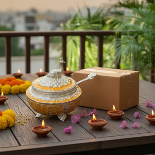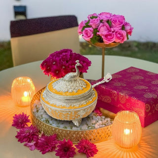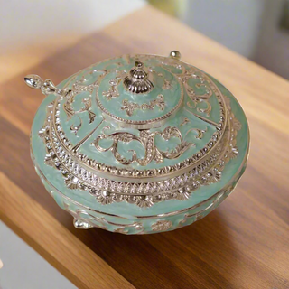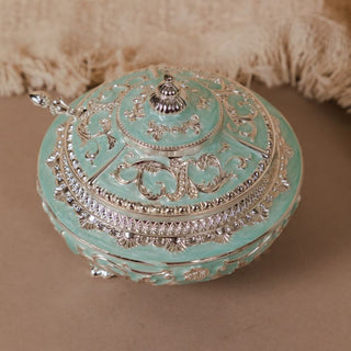 Āvaas | Tarangini - Peacock Jewellery Box With Latch | Medium | German Silver | Cream White | 1 pc