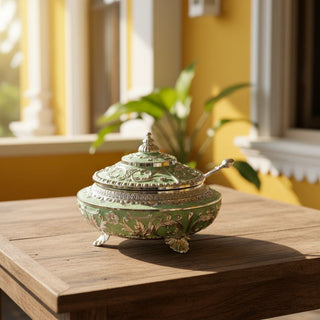 Avaas | Tulsi - Floral Metal Candy Dish | German Silver | Green & Silver | 1 Pc