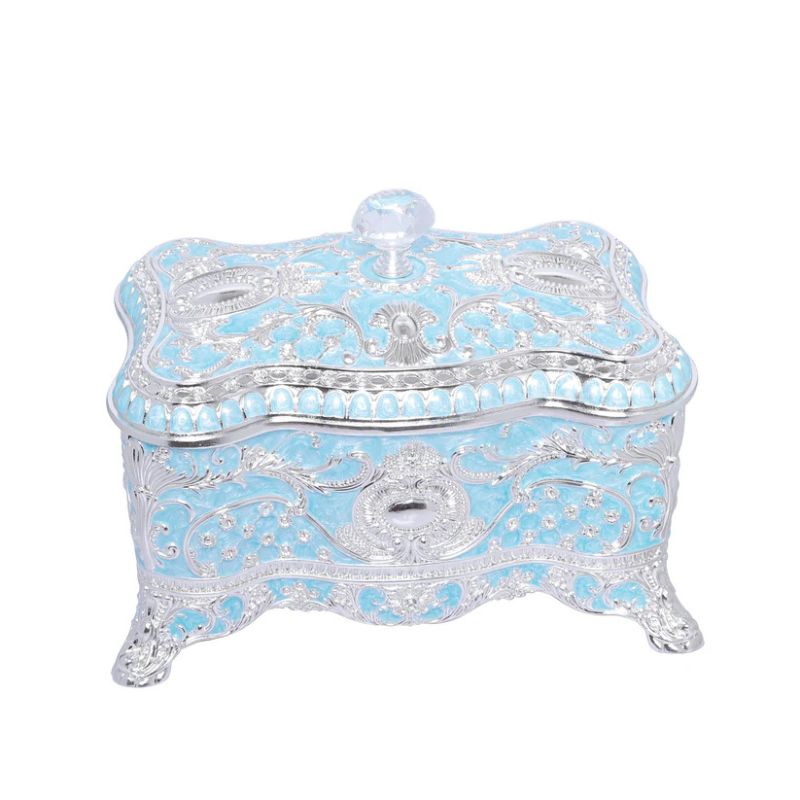 • Avaas | Neelam - Diamond Knob Peacock Jewellery Box Large | German Silver | Blue & Silver | 1 Pc