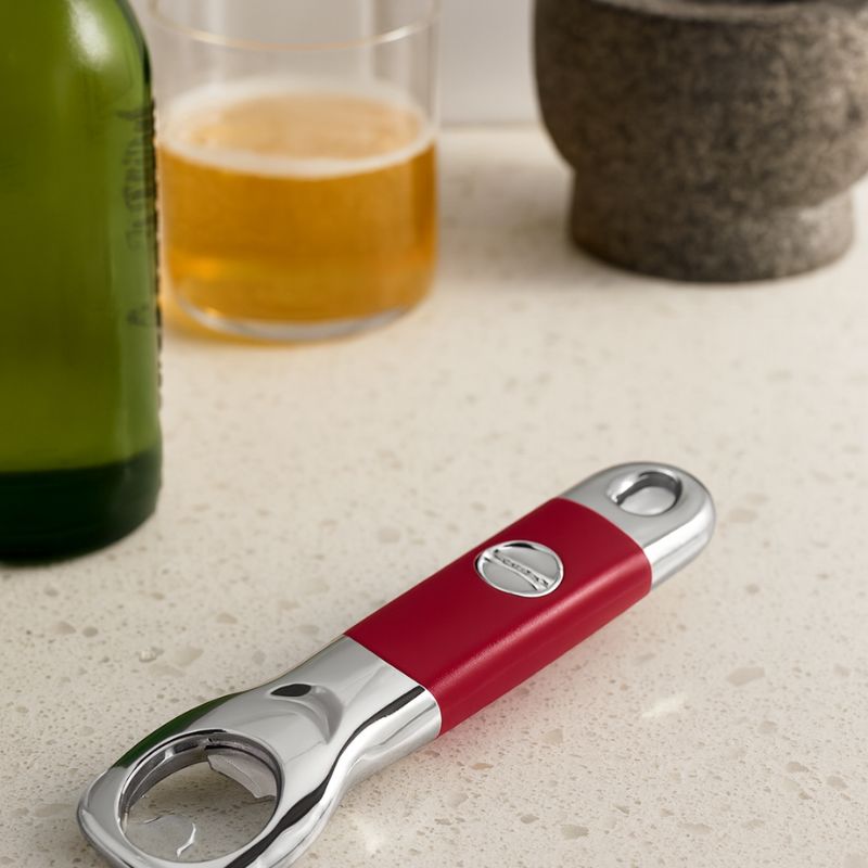 Make every celebration effortless with the KitchenAid Bottle Opener in Empire Red. Designed with durability and convenience in mind, this essential tool makes opening bottles quick and easy. Its premium stainless steel construction ensures long-lasting strength, while the ergonomic handle provides a secure, comfortable grip.
