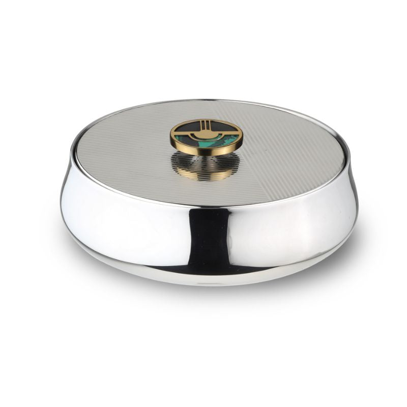 Bring timeless elegance to your dining table with the Deco Serving Bowl – Large from Arttdinox. Inspired by the iconic Art-Deco era, this luxury serving bowl showcases a refined geometrical form that blends classic design with modern sophistication. Crafted from high-quality stainless steel, it features distinctive green-and-gold accent knobs on the lid, adding a rich visual highlight to your serving collection.