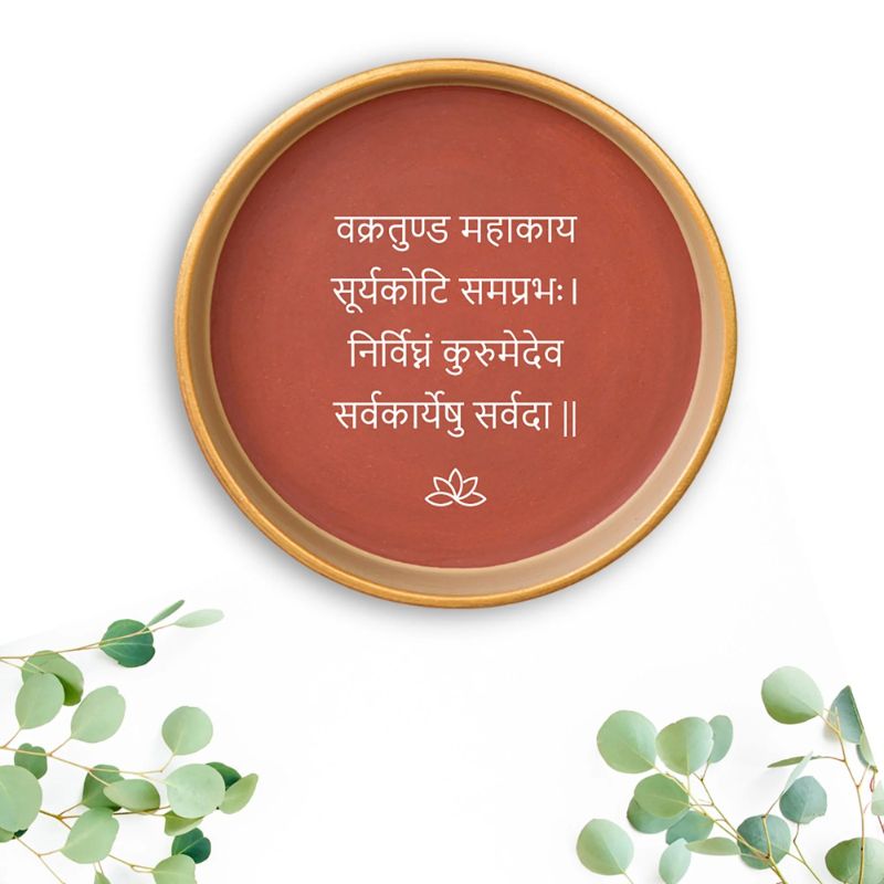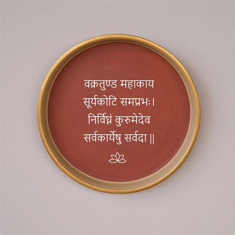 • Almiro Tree | Terracotta Wall Plate Ganesh Mantra | Brown | L - 20 CM | 1 pc