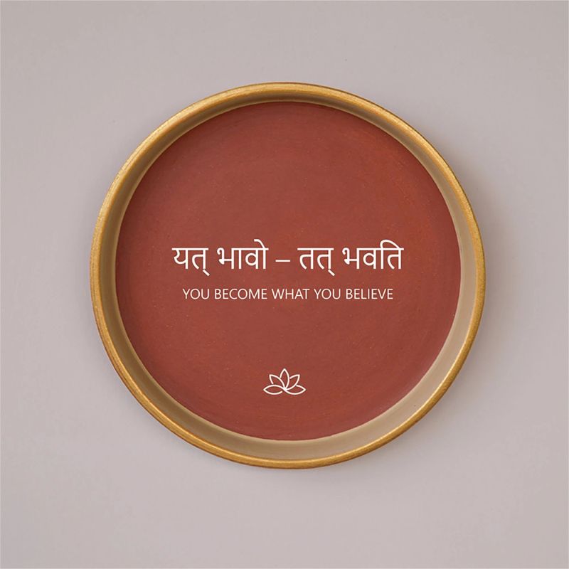Add a timeless touch of culture to your decor with this Terracotta Wall Plate featuring the Sanskrit quote, "You Become What You Believe." Carefully handcrafted and hand-painted, it not only offers artistic charm but also brings spiritual meaning to your space.