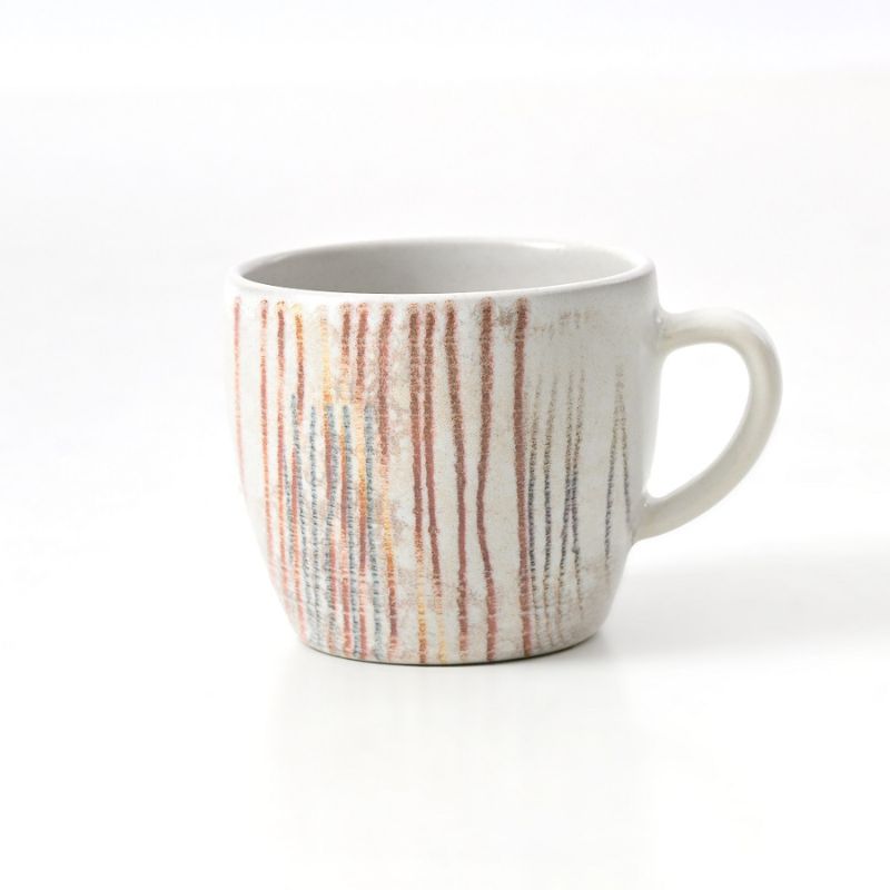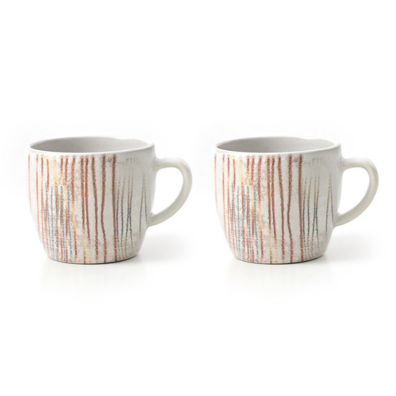 Start your day with the timeless elegance of the MESA Rio Gold Stoneware Cup and Saucer Set. Crafted with precision, each piece brings artisanal charm and durability to your table. The cups feature a soft off-white exterior with hand-glazed interiors showcasing fine, textured lines in earthy hues—terracotta, muted blue, and ochre. The matching saucers echo the same intricate pattern, completing a perfectly balanced design that elevates your coffee or tea ritual.