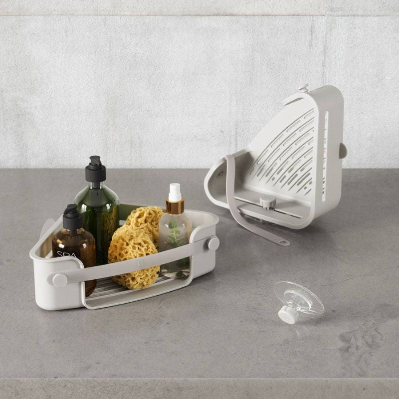 Made from durable plastic, this shower corner bin is ideal for storing shampoo, conditioner, body wash, razors, and more. Additionally, it features integrated drainage holes that prevent water buildup, allowing the bin to stay dry and hygienic. Thanks to its compact design and universal grey colour, it blends beautifully with modern and minimal bathroom décor.
