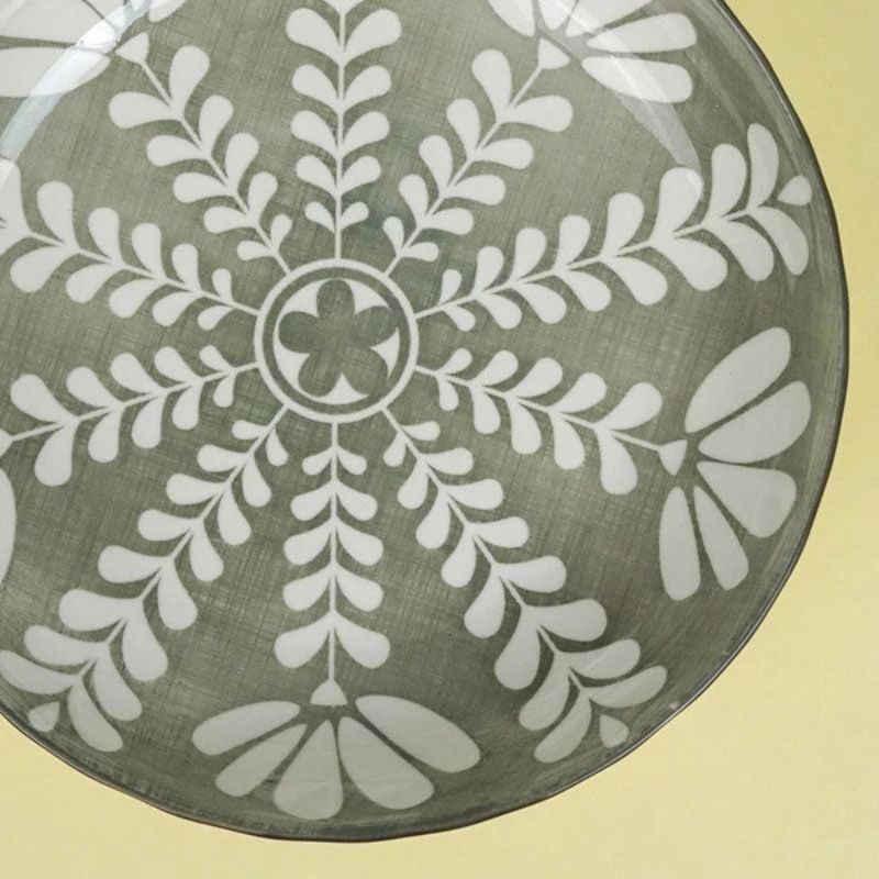 Tachiso | Rana - Floral Quarter Plate | Porcelain | Greenish Grey | 850 ml | Set of 2