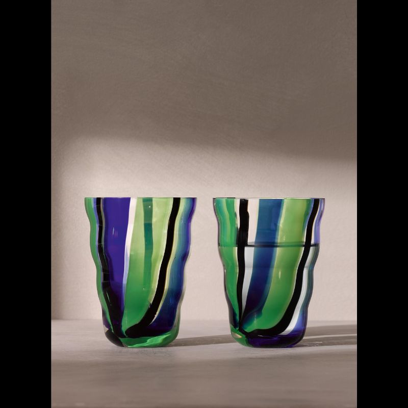 Add an artistic flair to your drinkware with the LSA International Folk Tumbler Set in striking shades of black, blue, and green. Each 280ml tumbler is mouth-blown by skilled artisans, showcasing a distinctive striped folk-inspired pattern. Designed with an undulating, rounded form, these tumblers are ideal for serving water, juice, or wine with effortless style.Every piece is individually crafted, meaning no two glasses are identical — a hallmark of true craftsmanship. The subtle transitions of color and organic contours lend a contemporary yet timeless appeal that complements any dining setup.