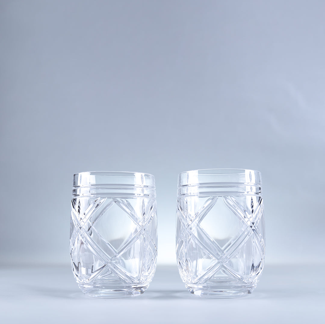 Crafted from premium lead-free crystal, the tumblers feature a bold check pattern that beautifully reflects light. As a result, your drinks look more vibrant and appealing. The stemless design offers a modern touch while ensuring a secure, comfortable grip. Additionally, their 345 ml capacity is ideal for both neat pours and mixed drinks.