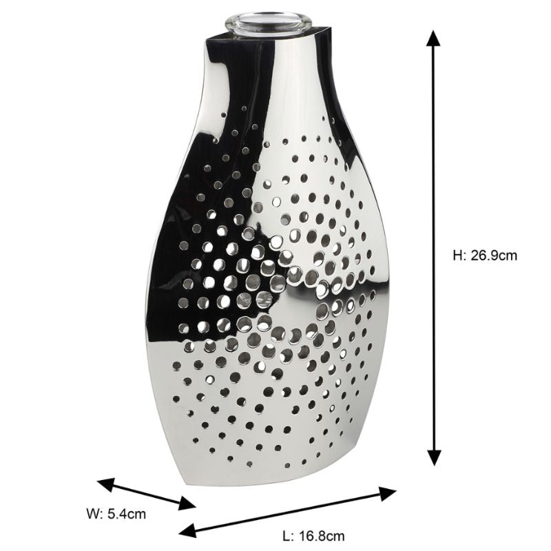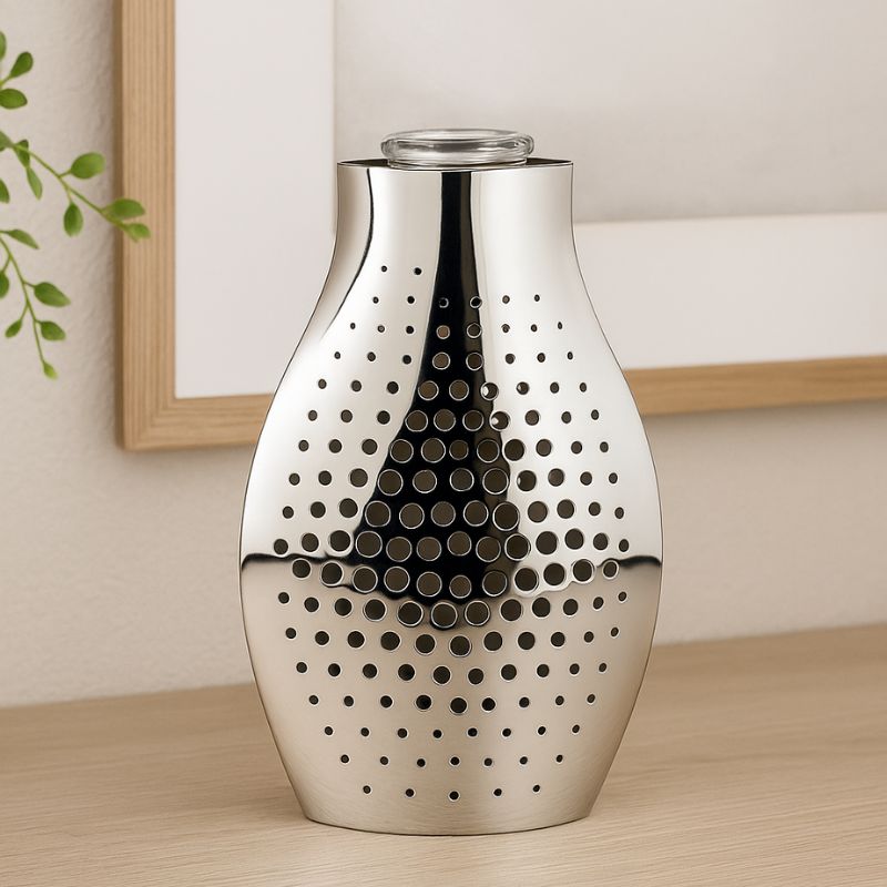 Its compact structure makes it ideal for desktops, shelves, side tables, and reception areas. Additionally, the durable stainless steel ensures long-lasting shine, while the inner glass container keeps your arrangements neat and secure. This vase balances aesthetics with everyday functionality, making it a thoughtful gift for décor lovers.