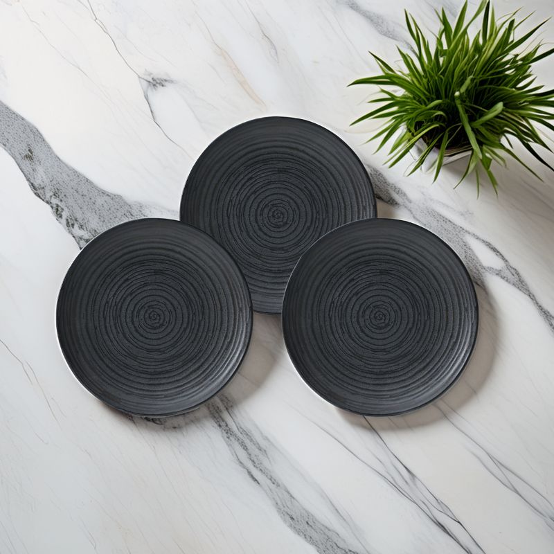 Elevate your dining experience with the MESA Crayon Dinner Plate Set of 3, a masterpiece of modern craftsmanship and elegant simplicity. Each 27 cm plate is handcrafted from high-quality stoneware, featuring a smooth matte black finish that perfectly complements both vibrant and minimalist table settings. Designed to mix effortlessly with MESA’s artisanal striped and textured pieces, it adds a touch of sophistication to every meal.