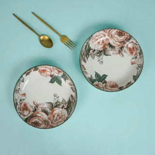 Tachiso | Rana - Floral Quarter Plate | Porcelain | Greenish Grey | 850 ml | Set of 2