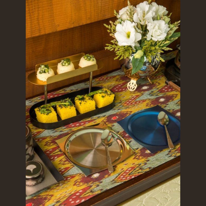 Crafted from high-quality stainless steel, this platter promises long-lasting durability along with a refined visual appeal. Additionally, its sleek geometric structure and sophisticated colour palette make it a standout décor accent even when not in use.