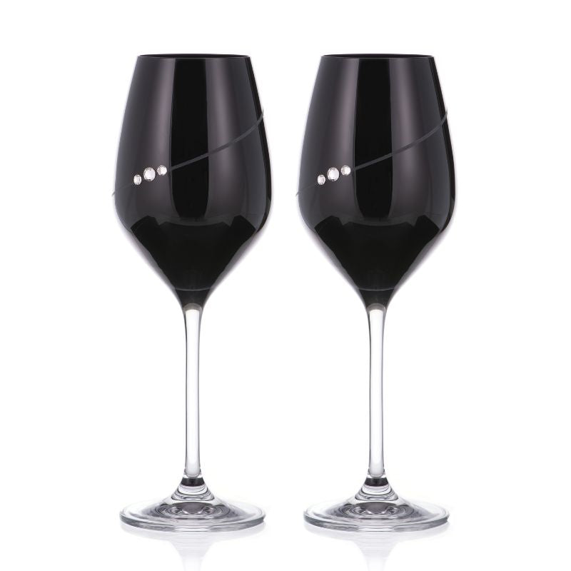Enhance your wine experience with the Diamante Black Silhouette White Wine Glasses. These glasses are beautifully crafted from lead-free crystal and feature Swarovski Elements crystals for a touch of luxu