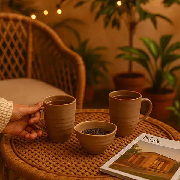 Crafted from durable stoneware and finished in a warm, earthy burnt sienna, this set adds beauty and practicality.Perfect for quiet mornings or casual gatherings with loved ones, it features two mugs and one versatile bowl, making it an essential addition to your kitchen.