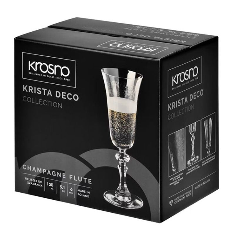 Add a touch of brilliance to your glassware collection with the Krosno Krista Deco Champagne Glasses Set of 6 — where elegance and craftsmanship meet to celebrate life’s finest moments.