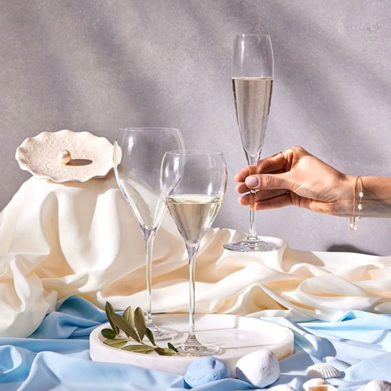 - Elegant Perla design – Slim, refined silhouette that enhances bubbles and aromas.