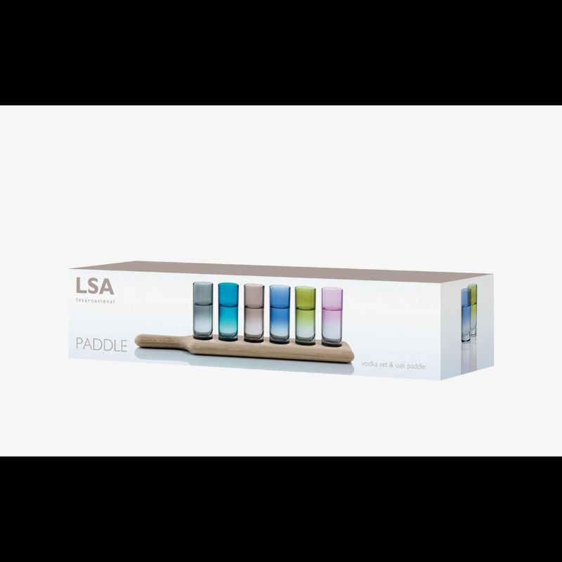 LSA International | Paddle Vodka Set & Oak Paddle | L40cm | Assorted Colours | Set of 6