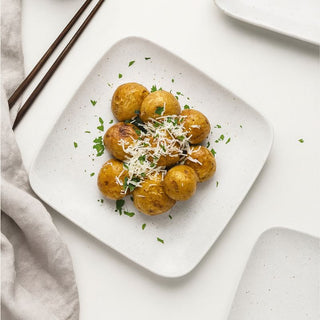 Upgrade your dining collection with the Fujitake Vital Square Plate Set. Crafted from premium stoneware, this set of 12 plates features a soft linen tone decorated with a subtle dotted pattern. Moreover, the modern square shape adds a touch of sophistication while blending beautifully with both casual and formal dining.