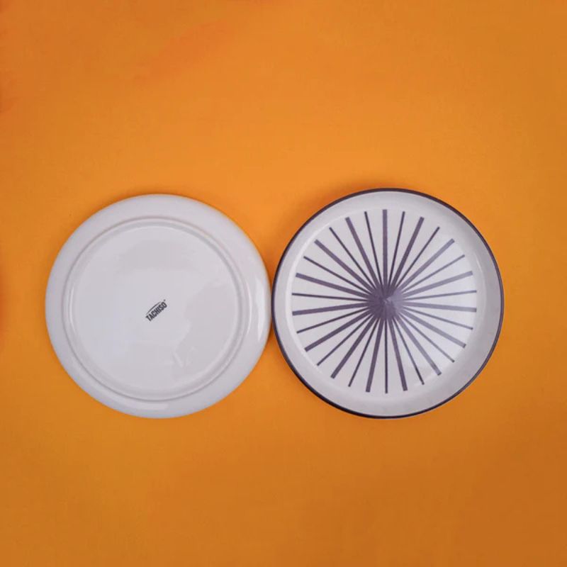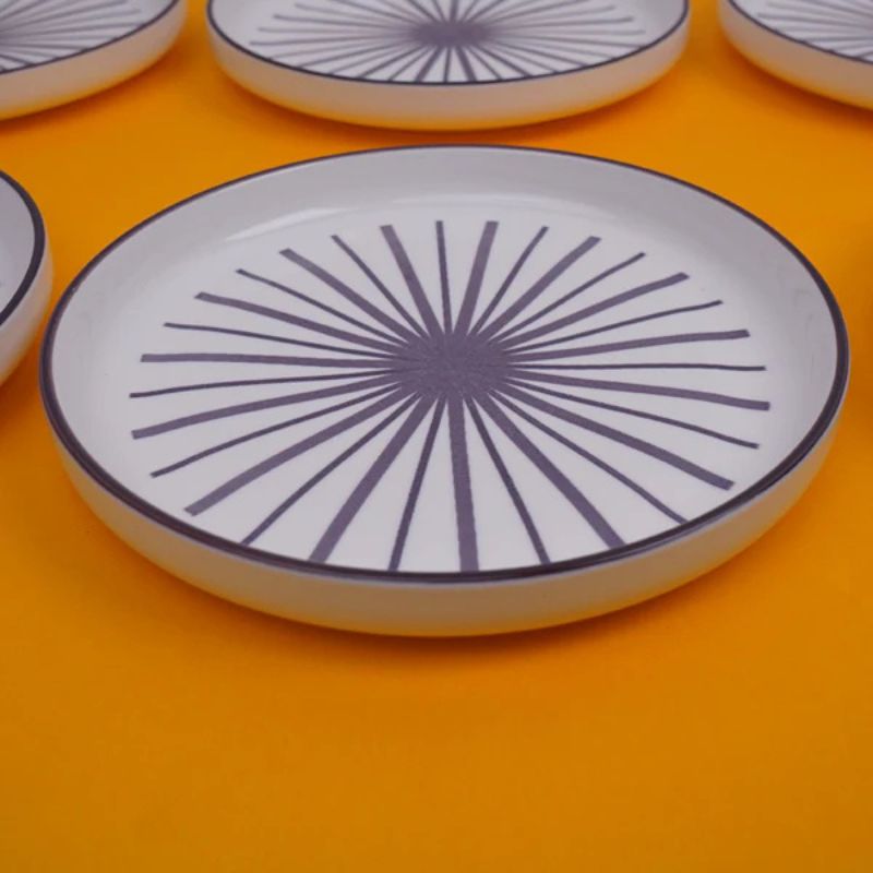 Bring vibrant elegance to your dining experience with the Tachiso Mario Maroon Snack Plate Set. Crafted from durable ceramic, this set includes six beautifully designed plates in a rich purple and white color combination. As a result, they not only enhance your table decor but also offer practical everyday use.