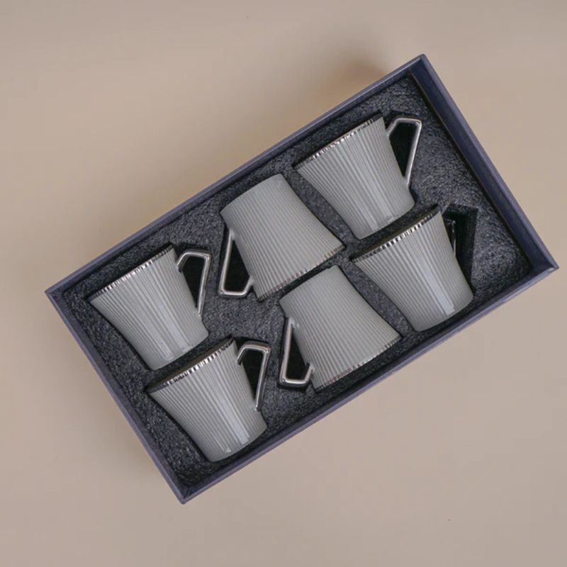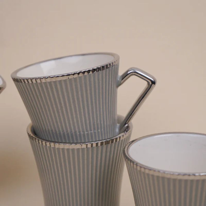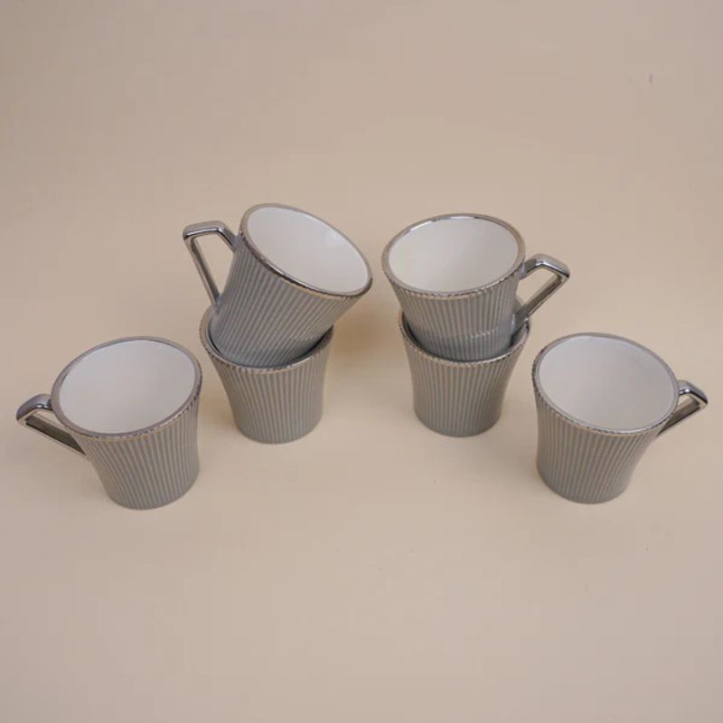 Tachiso Thira Grey Ceramic Cup Set – 180 ML – Set of 6