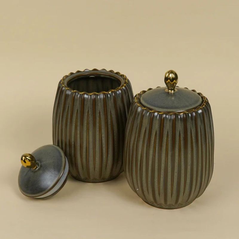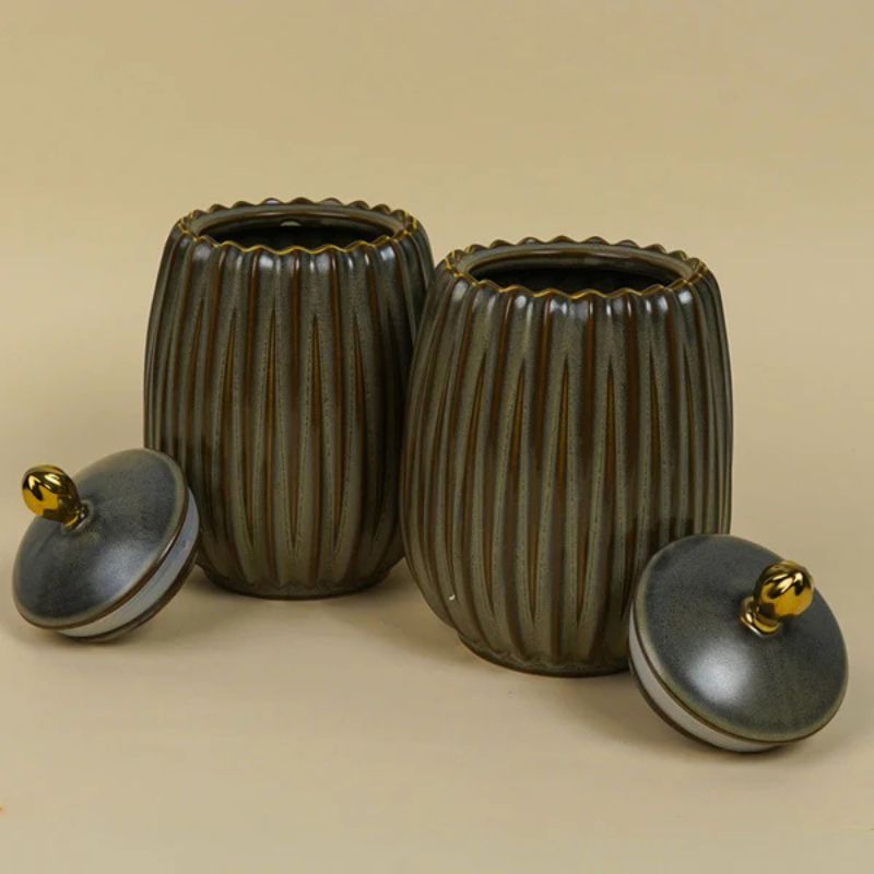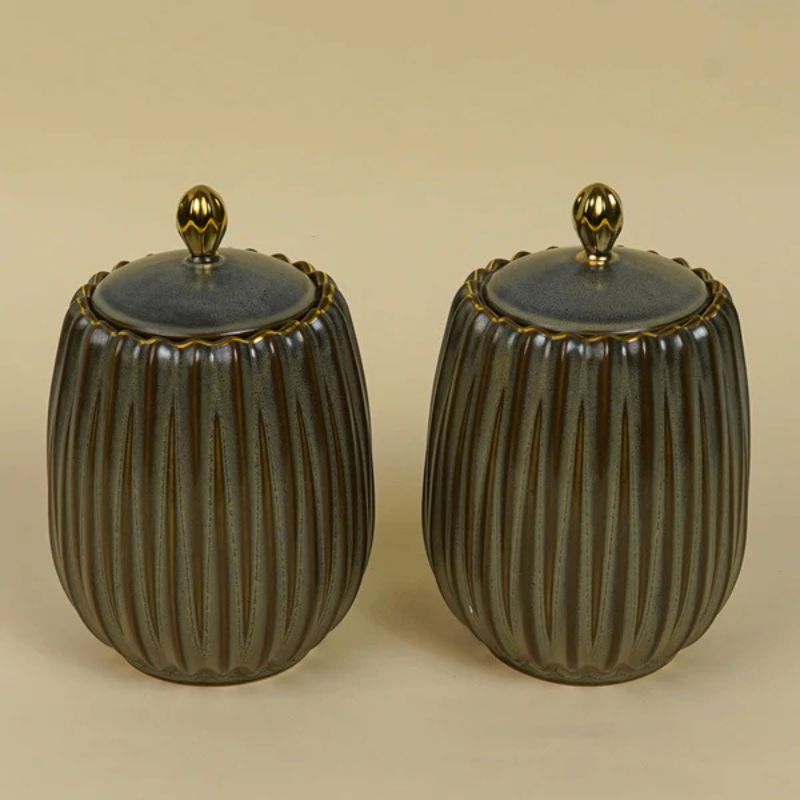 Tachiso | Vajra - Dark Green Storage Jar | Porcelain | Dark Green | 1200 ml | Set of 2