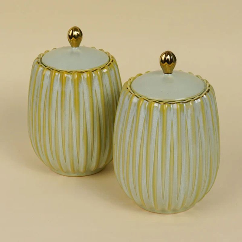 Tachiso | Vajra - Light Green Storage Jar | Porcelain | Light Green | 1200 ml | Set of 2